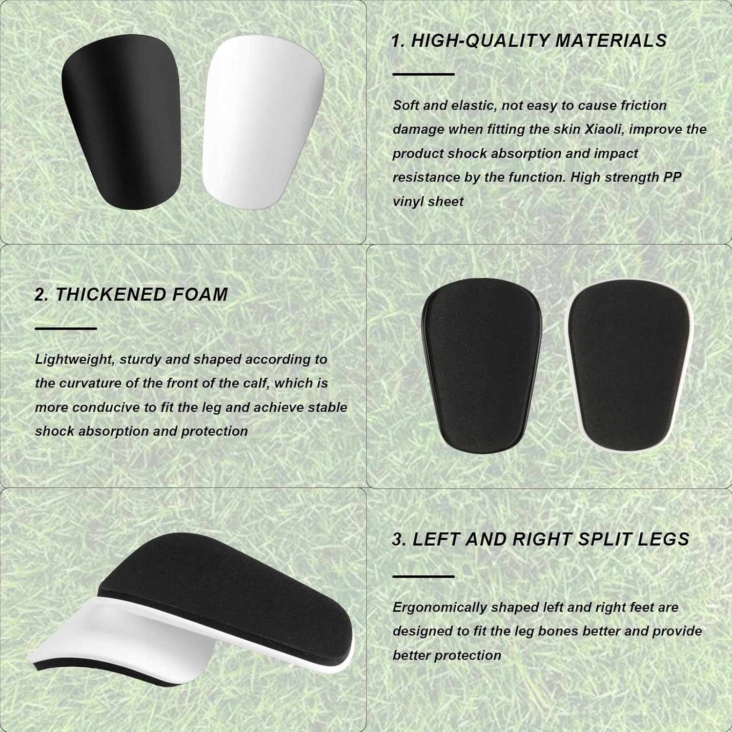 Ergonomiczna konstrukcja: Łuk małych podkładek do goleni jest ergonomicznie zaprojektowany, z wysokim dopasowaniem, zapewniając wygodniejsze dopasowanie i lepszą elastyczność. Konstrukcja antypoślizgowa zapobiega łatwemu poruszaniu się podczas ćwiczeń