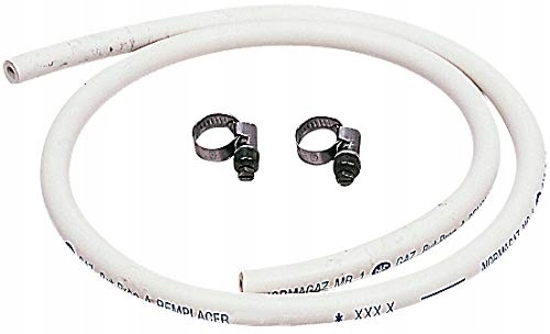 Wąż, z 2 obejmami do węży, na kemping na butan lub propan. Norma typ gazu wyprodukowany zgodnie z brytyjskim standardem XPD 36.110.