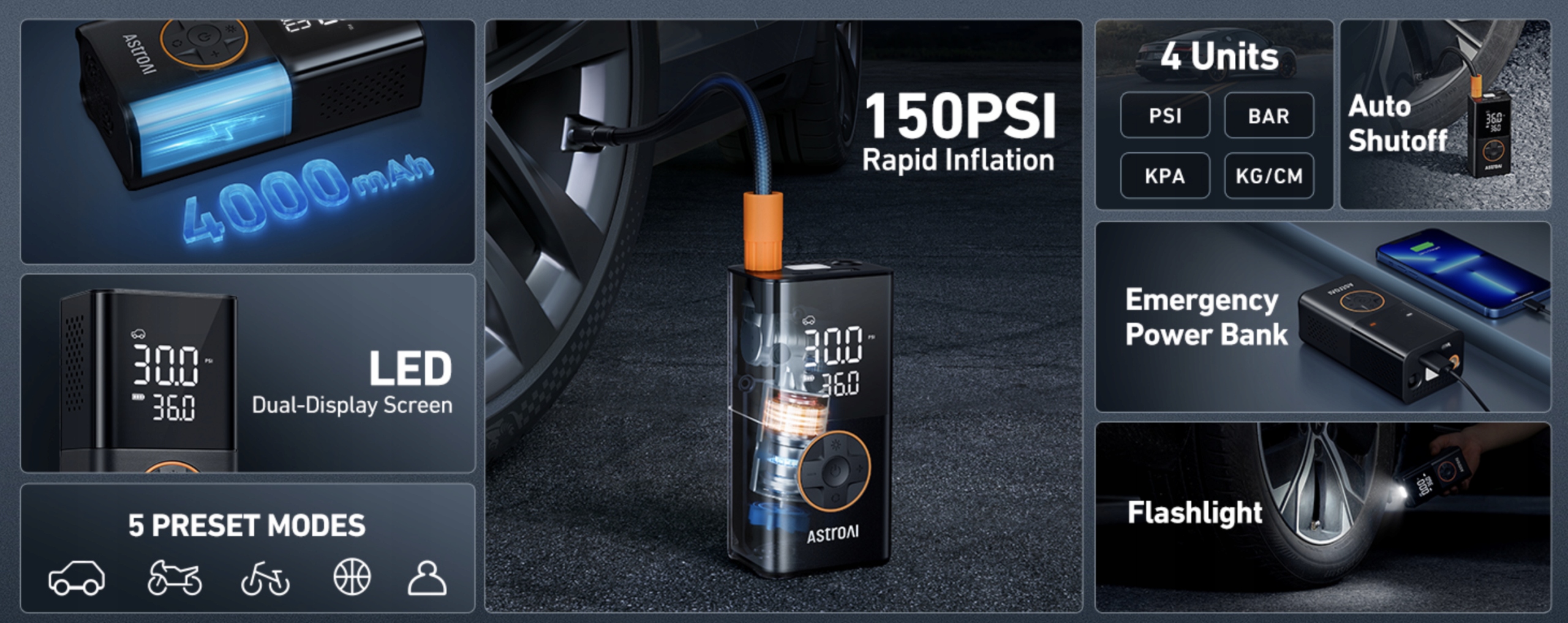 Koniec z nerwami, gdy spada ciśnienie w oponach albo telefon nagle pada w trasie. AstroAI L7 to przenośny kompresor z wbudowanym akumulatorem, który nie tylko dopompuje koła w aucie, rowerze, piłce czy hulajnodze, ale posłuży także jako awaryjny powerbank i praktyczna latarka LED. Jeden sprzęt, wiele zastosowań – zawsze pod ręką.