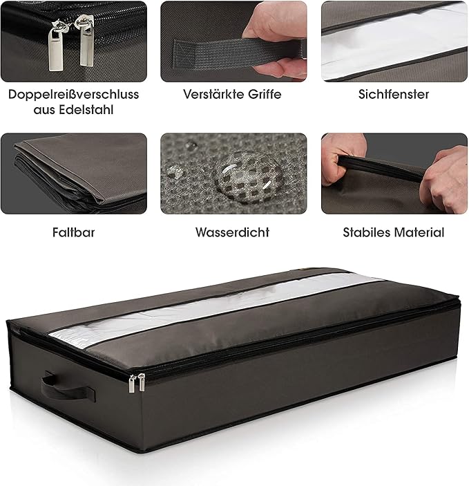 Dzięki 2-drożnemu zamkowi błyskawicznemu można łatwo otwierać i zamykać przechowywanie ubrań. Nawet jeśli jest zapakowana do krawędzi, nie stanowi to żadnego problemu z wysokiej jakości zamkiem błyskawicznym ze stali nierdzewnej. Dzięki przezroczystemu okienku na pierwszy rzut oka można rozpoznać zawartość worka pod łóżko.