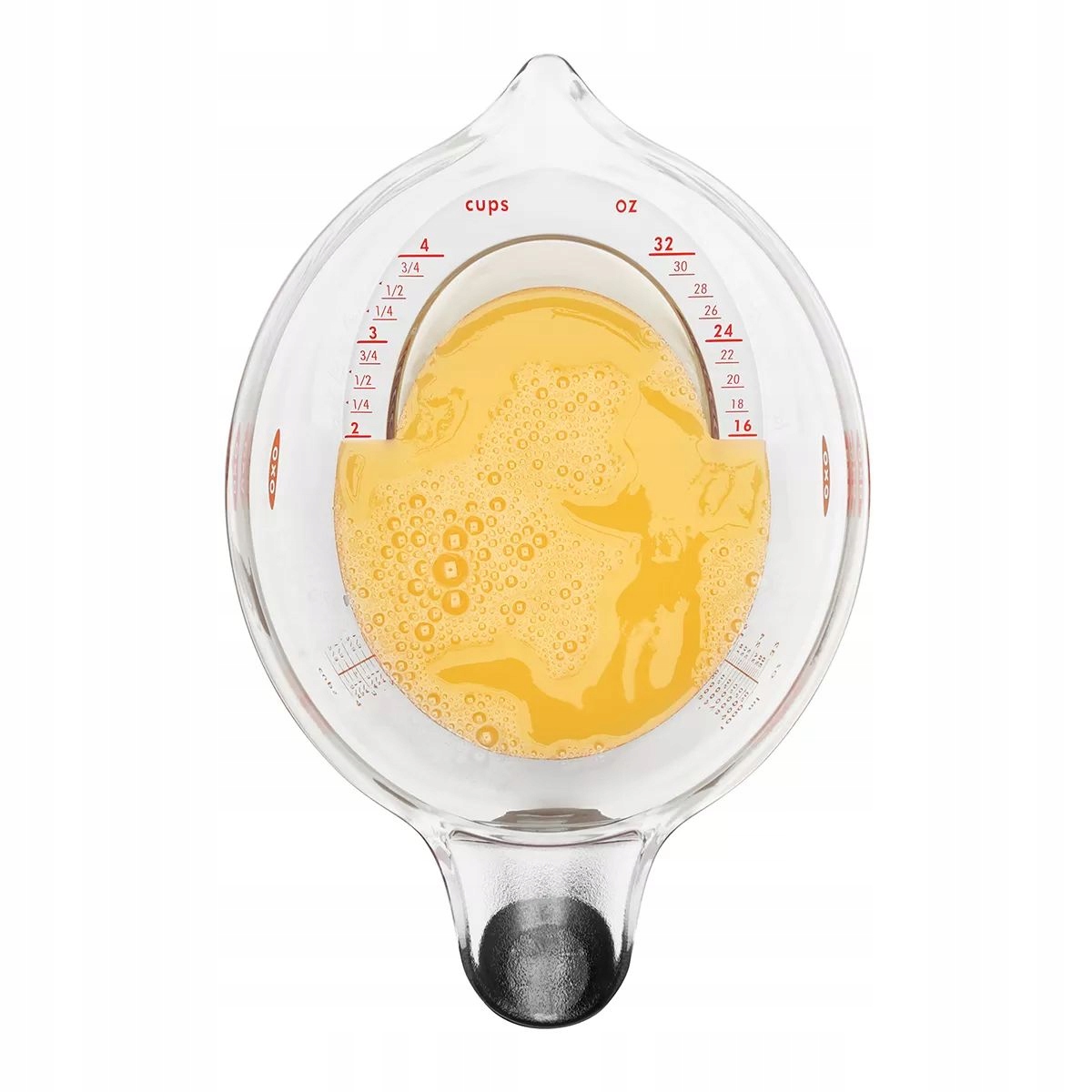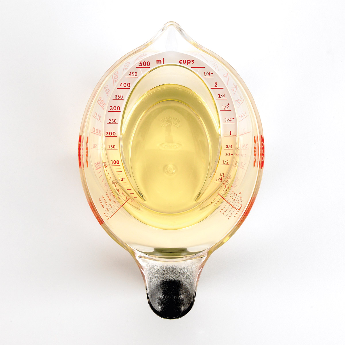 OXO ma swój własny sposób na sprawdzanie ilości odmierzanych produktów, poprzez opatentowaną skalę, która jest umieszczona pod kątem,