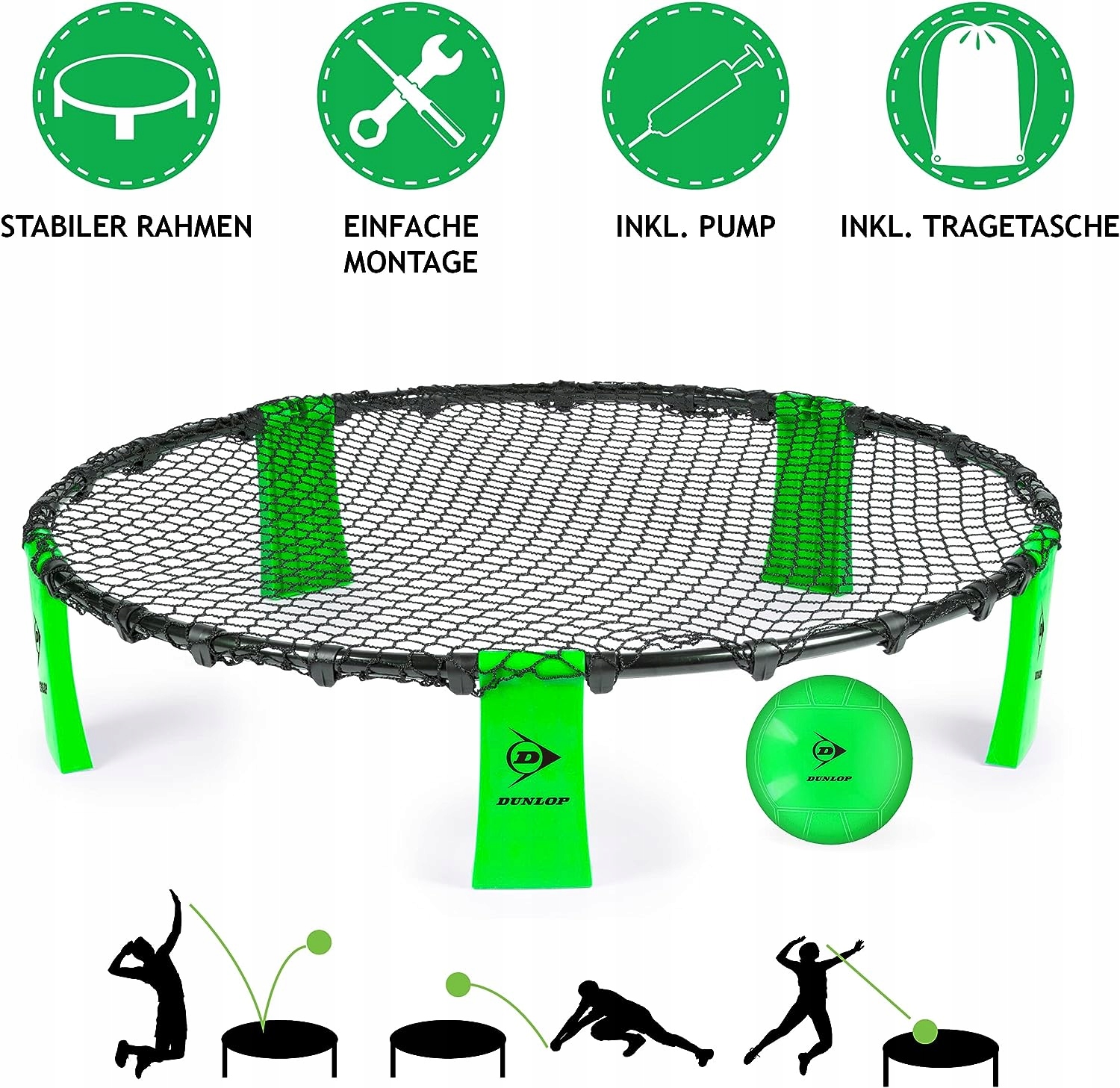 ✅ Kompletny zestaw do gry – Gra Dunlop Spikeball jest dostarczana jako kompletny zestaw. W zestawie znajduje się 5-częściowa rama, 5 nóg, okrągła siatka, piłka, pompka do nadmuchiwania piłki i praktyczna torba do przenoszenia.