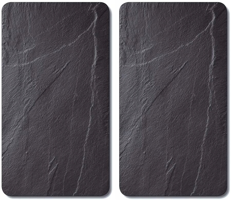 Komplet dwóch dużych szklanych desek od Kesper to ładny element dekoracyjny. Mają one swoim wyglądem imitować szary łupek, bardzo modny materiał aranżacyjny dla domu.