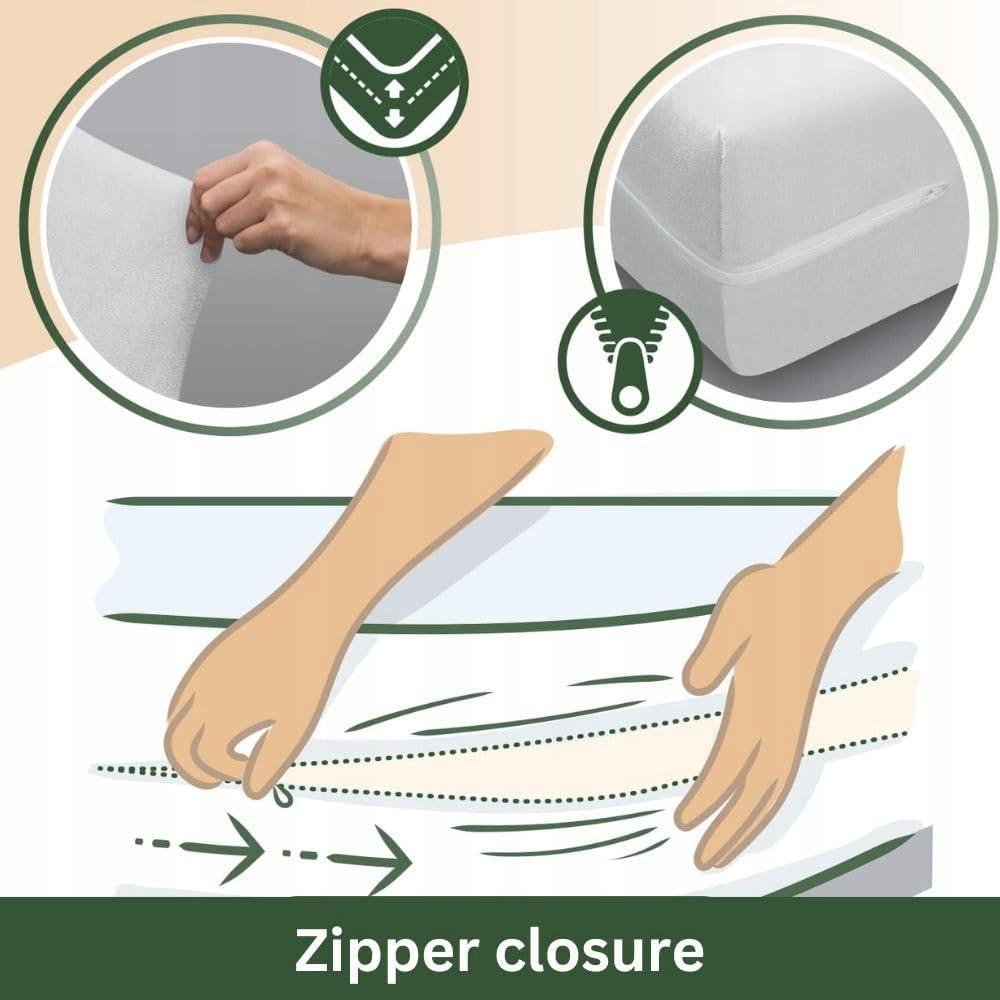 Pokrowiec na materac z mikrofibry firmy Savel jest bardzo łatwy do założenia dzięki wszytemu zamkowi błyskawicznemu w kształcie litery U. Zamek błyskawiczny zamyka materac ze wszystkich stron i chroni go przed brudem, kurzem i tarciem o ramę łóżka.