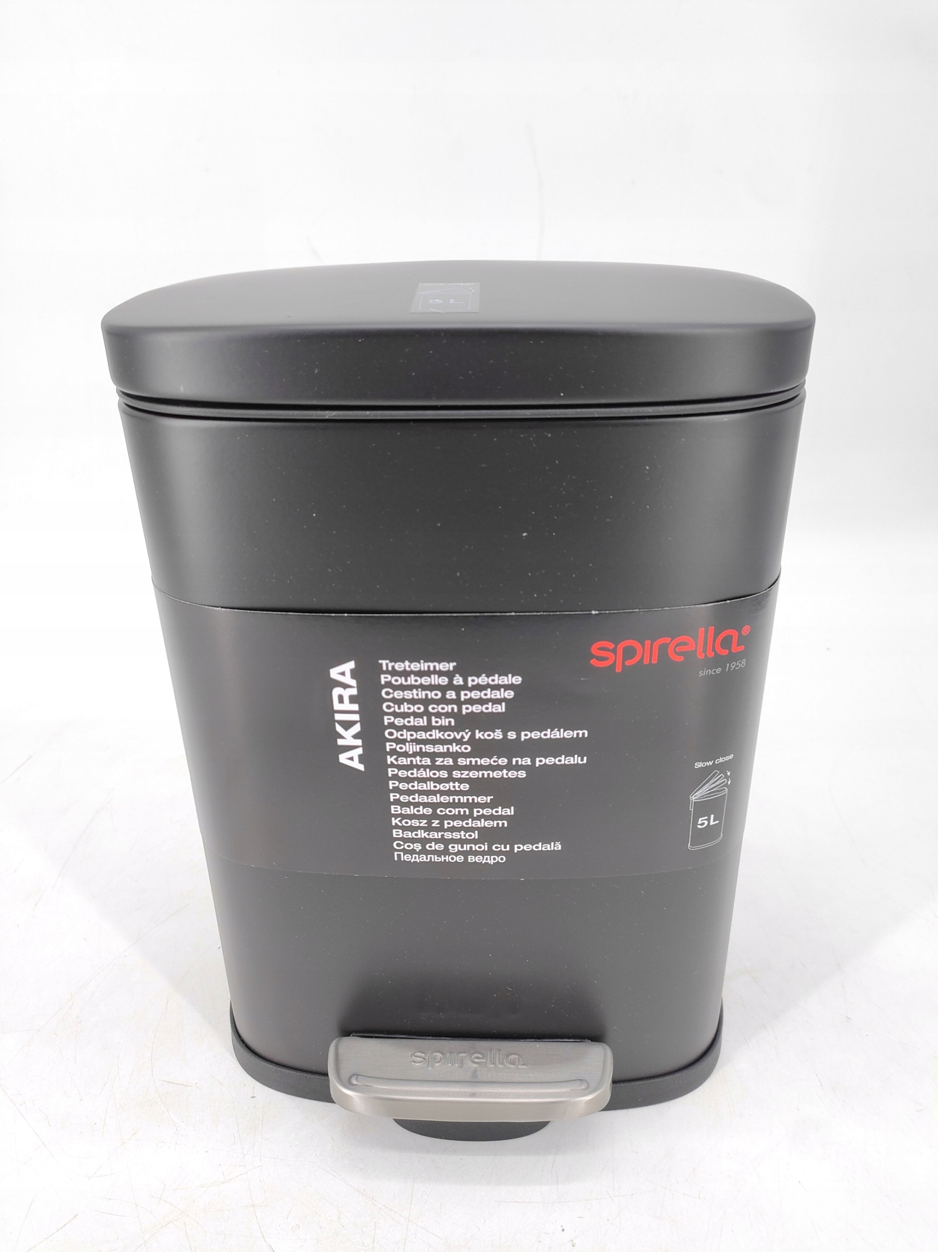 Spirella Akira. Pojemność: 5 l, Układ: Prostokątny, Materiał obudowy: Stal. Szerokość produktu: 214 mm, Głębokość produktu: 176 mm, Wysokość produktu: 300 mm