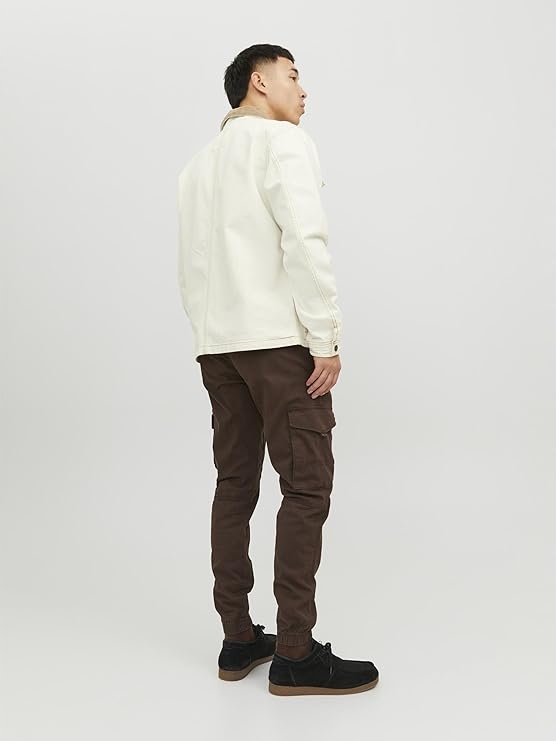 Spodnie PAUL FLAKE marki JACK&JONES to klasyczne bojówki o zwężanym kroju. Ekologiczne pranie enzymatyczne daje efekt znoszenia, a dodatek elastanu zapewnia doskonałe dopasowanie.