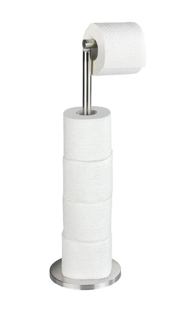 Chcesz unowocześnić wygląd swojej łazienki w możliwie prosty sposób, unikając czasochłonnego wiercenia w ścianach? Sprawdź prezentowany stojak na papier toaletowy – stylowy, oszczędzający miejsce, wykonany z solidnej stali wypolerowanej na połysk. Pasować będzie do nowoczesnych toalet – np. dla gości w biurach, lokalach, restauracjach. Odnajdzie się też w łazienkach w stylu glamour, gdzie połyskujące materiały odgrywają dużą rolę. Stojak ma wysokość 55 cm, a średnica jego podstawy – ok. 21 cm. Szeroka podstawa zapewnia stabilność stojakowi. Wykonany jest ze stali nierdzewnej, dzięki czemu zachowa świetny wygląd przez lata. Na trzpieniu zmieszczą się ok. 4 zapasowe rolki papieru toaletowego. Prosta forma stojaka umożliwi dopasowanie się do każdego stylu wnętrza oraz zmianę jego aranżacji.